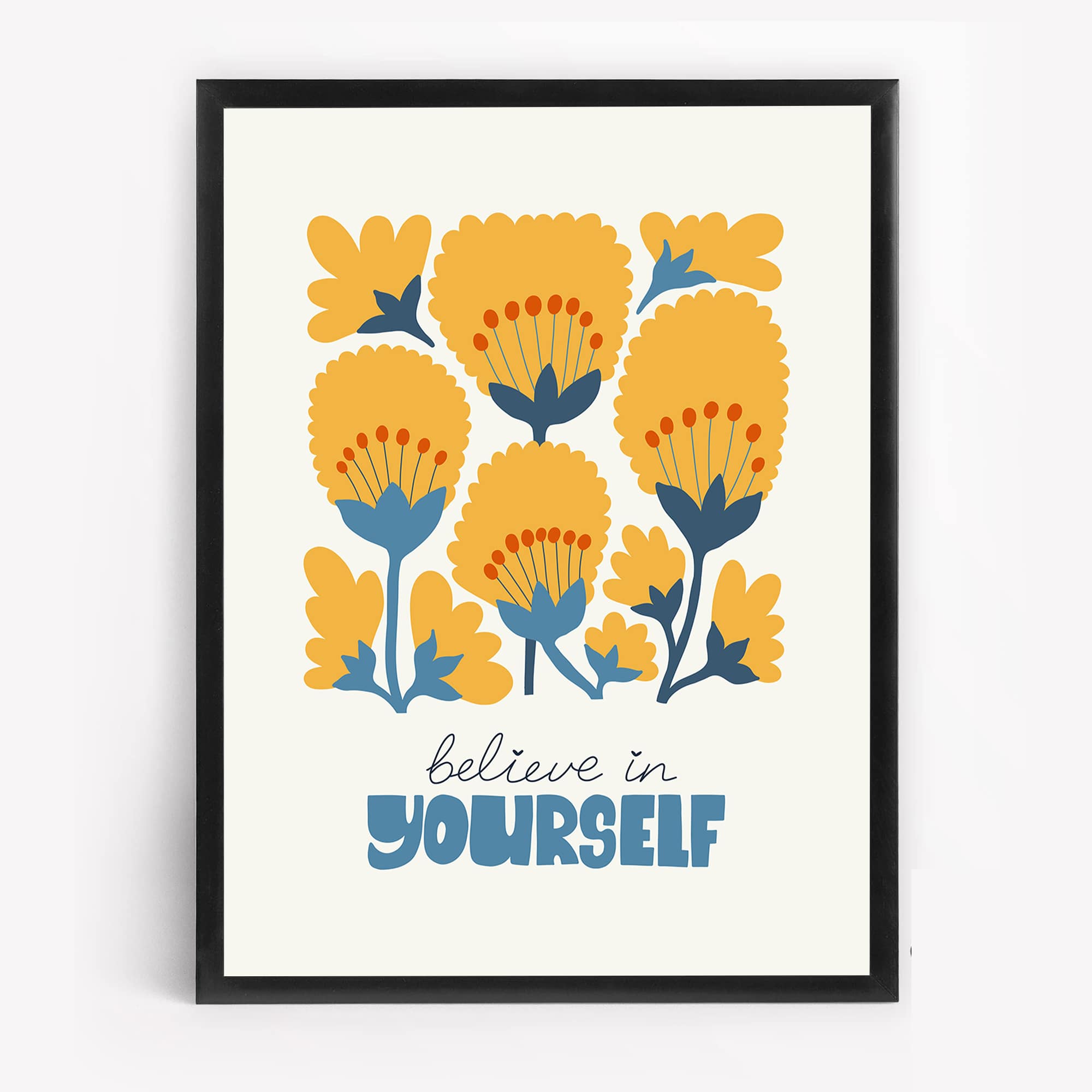 Motivational Floral Wall Art | Believe in Yourself | Painting with Yellow Flowers or Bedroom, Living Room or Gallery